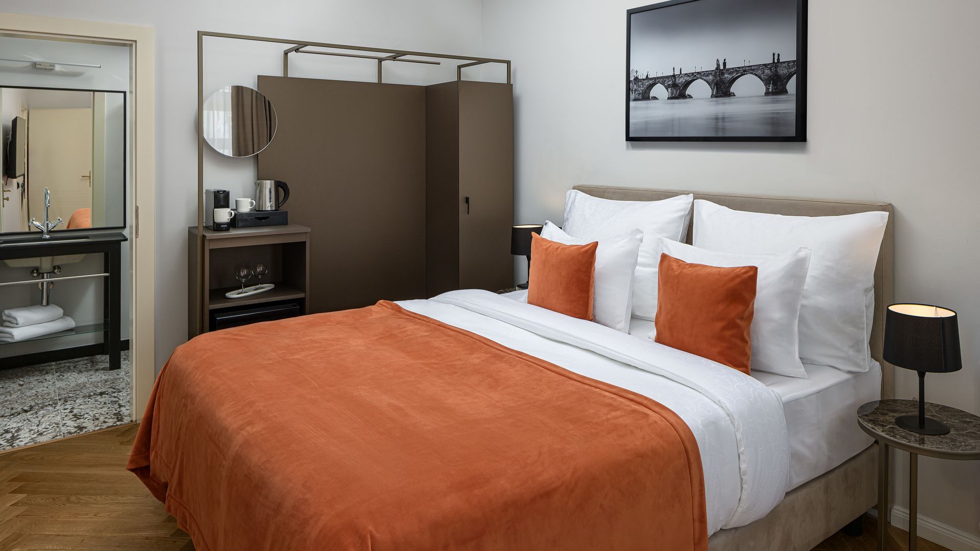 Romantic accommodation in the heart of Prague awaits you right next to Charles Bridge, where history meets modern comfort.