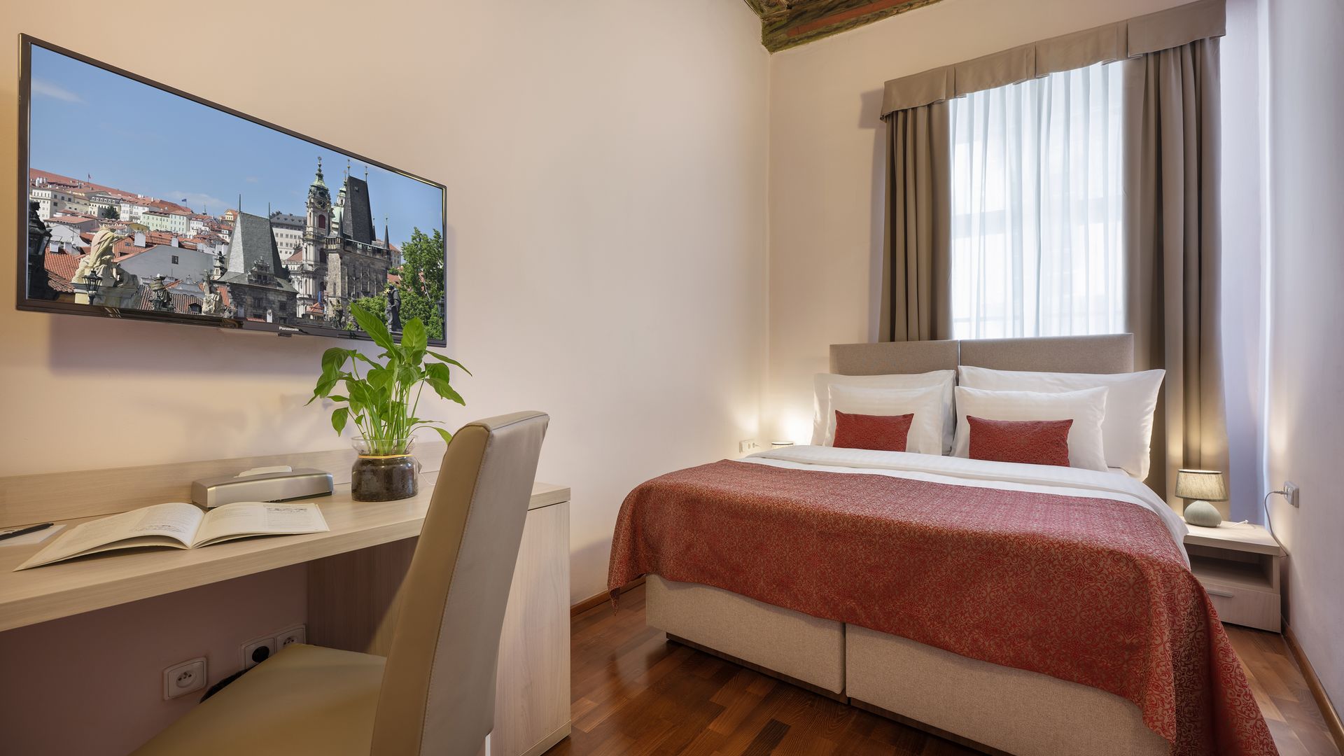 We offer 44 original rooms, some of which are spacious family suites, ideal for the comfortable stay of families or groups. The hotel includes a stylish restaurant with a charming outdoor terrace where you can taste a modern take on Czech classics in the heart of historical Prague. Thanks to its exceptional location just steps from Charles Bridge and Old Town Square, Hotel U Malvaze is an ideal place to discover all the beauties of the city center.