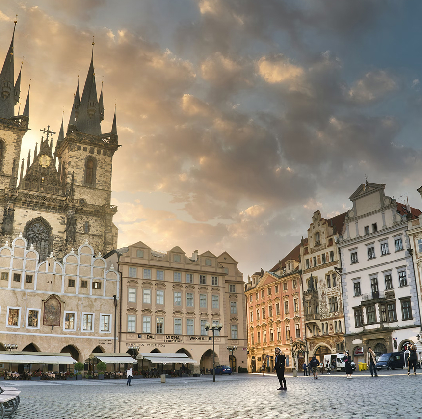 The vibrant heart of historic Prague, home to landmarks such as the Astronomical Clock, Týn Church and Baroque buildings. 5 minutes walk